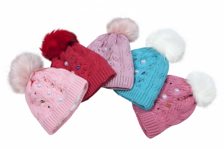Размерный ряд 1-2 года, размер шапки (см.): 46-48 Цвет Розовый / Светло-сиреневый / Вишневый / Бирюзовый / Брусника Артикул 4851 Состав 50%-шерсть; 50%-акрил