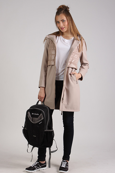 Стильное молодежное пальто полуприлегающего силуэта с центральной застежкой на молнию, с уютным капюшоном, втачными рукавами и прорезными карманами на молнии. Пальто на комбинацию двух тканей:мягкого драпа и плащевки. Длина по спинке - ок. 90 см., длина рукава - ок. 61 см. Рост модели 177 см.