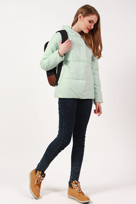 Куртка молодежная прямого силуэта со спущенным рукавом, с капюшоном. Изделие с центральной застежкой на молнию дополнено планкой на потайные кнопки, с прорезными карманами с листочкой. Длина по спинке - ок.60см., длина рукава+ длина плеча - ок.70см. Рост модели 170 см.