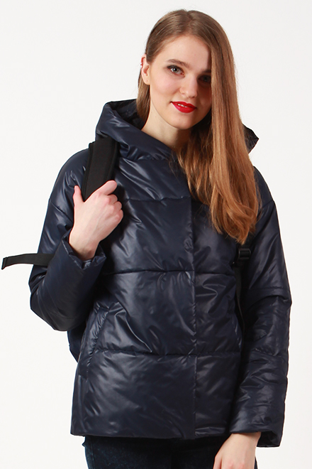 Куртка молодежная прямого силуэта со спущенным рукавом, с капюшоном. Изделие с центральной застежкой на молнию дополнено планкой на потайные кнопки, с прорезными карманами с листочкой. Длина по спинке - ок.60см., длина рукава+ длина плеча - ок.70см. Рост модели 170 см.