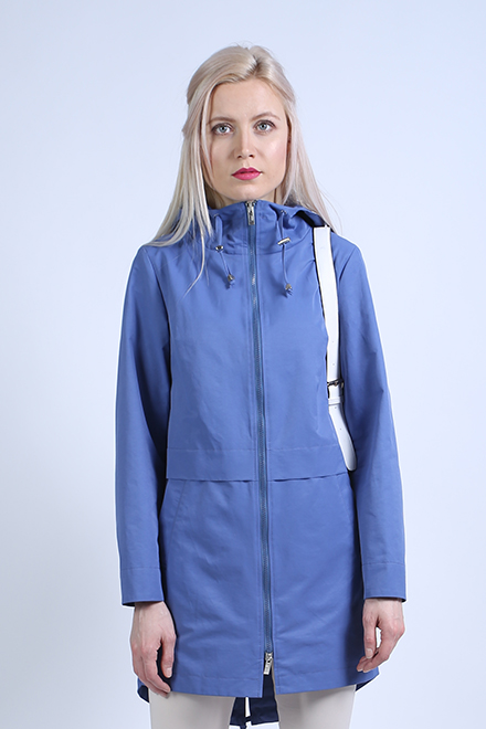 Легкий плащ - парка на подкладке с капюшоном. Универсальный прямой силуэт, прорезные карманы с листочкой, асимметричная линия низа. Длина рукава - 61см. Длина по спинке - 87см, по переду - 81см. Рост модели 175.