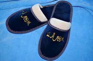 Ткань-велюр. Украшение - вышивка золотой нитью "ШАЛОМ". Пришивная подошва.